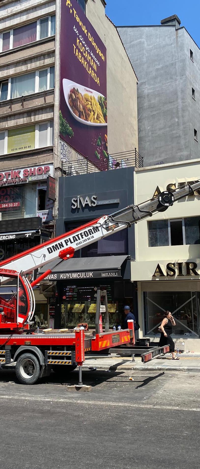 Ataşehir çift kırma bomlu vinç ile reklam tabelası montajı